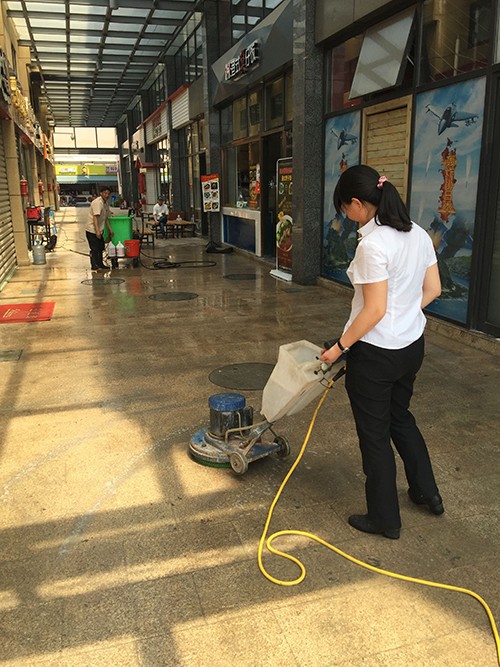 近日,建华商业中心在日常保洁工作中,引进了手推式洗地机,专门针对商业中心地面的顽固油渍进行了彻底的清洗。
