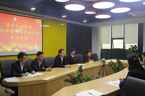 在17日下午的外审末次会议上,认证中心对于本次审核情况作了总结汇报。建华文创集团和建华文创园的管理标准、程序规范、客户满意,总体符合ISO9001:2008质量管理体系标准要求,顺利通过审核。