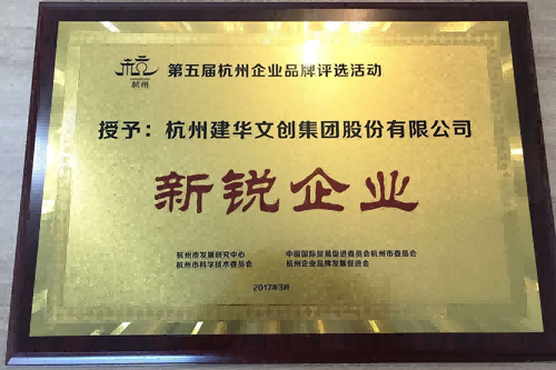 此次论坛为第五届杭州企业品牌评选活动进行了颁奖仪式,杭州建华文创集团股份有限公司在本次评选活动中获“市新锐企业”荣誉称号。