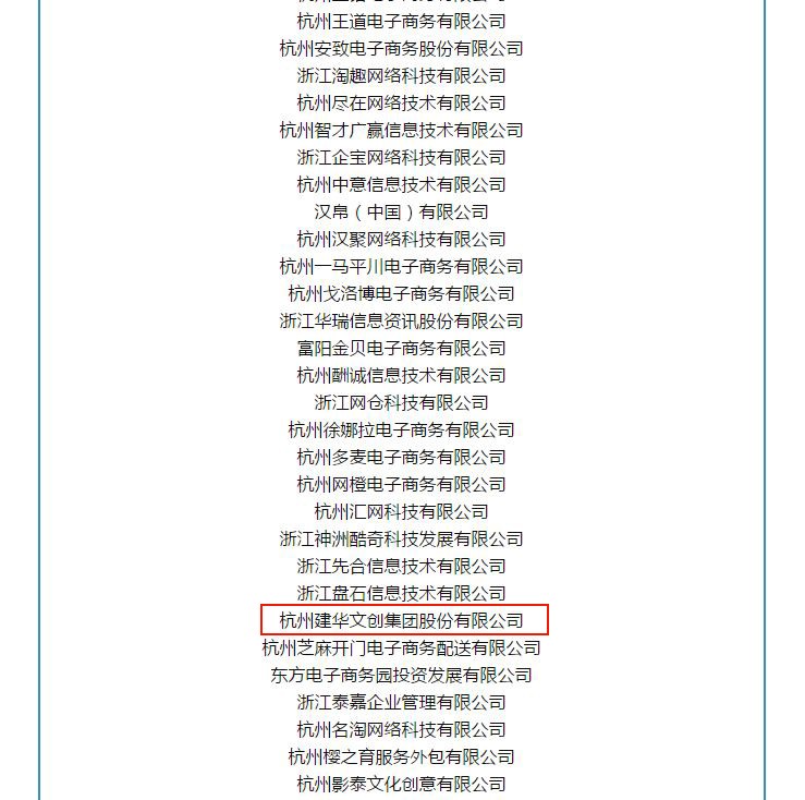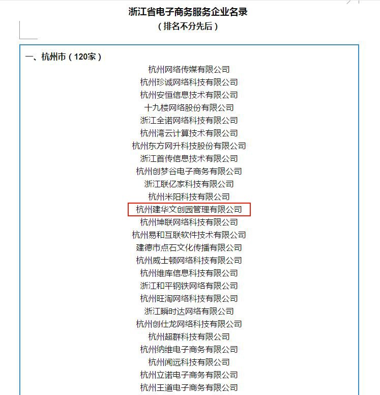 根据《浙江省商务厅关于开展浙江省电子商务服务企业名录调整工作的通知》,杭州建华文创集团股份有限公司、杭州建华文创园管理有限公司入选《浙江省电子商务服务企业名录》(以下简称《名录》)。