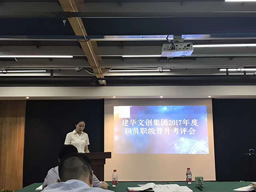 7月3日下午,建华文创集团在石祥路总部开展2017年度首次职员职级晋升考评(面试)工作。建华文创集团董事长、总裁戴海洋、副总裁、地产事业部总经理(兼)傅建华、首席风控官、助理总裁邹华东、助理总裁许泽俊等中高层人员13人参加考评会议。