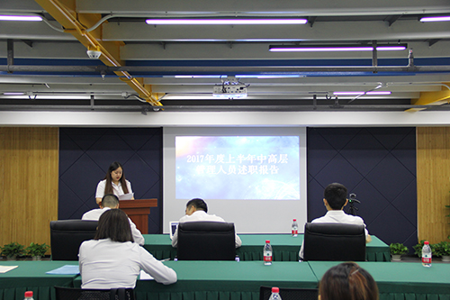 会上,集团3位高管和10位中层正职管理干部本着实事求是的原则对上半年工作做了总结、述职,主要包括:上半年绩效指标、重点工作完成情况、存在的困难和问题,以及下半年工作思路和举措等。