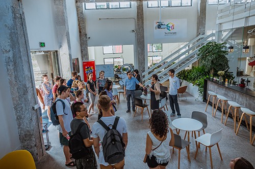 国际班一行参观了园区“梦立方·历史遗迹陈列馆”,走访了联合办公众创空间品牌——北京“科技寺”,并在园区梦立方会议室进行了座谈。助理总裁许泽俊首先对国际班的来访表示热烈欢迎,随后介绍了建华集团转型升级历程以及建华文创集团近年来的发展成效。国际班的学员代表纷纷就其感兴趣的问题进行了互动交流。