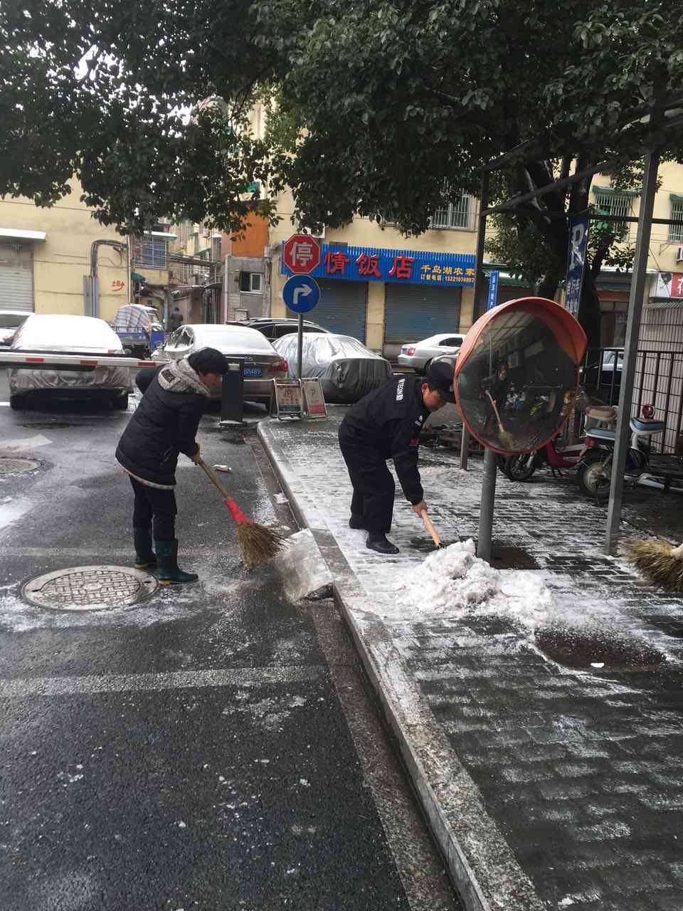 众创塘积极组织扫雪 确保人员安全出行