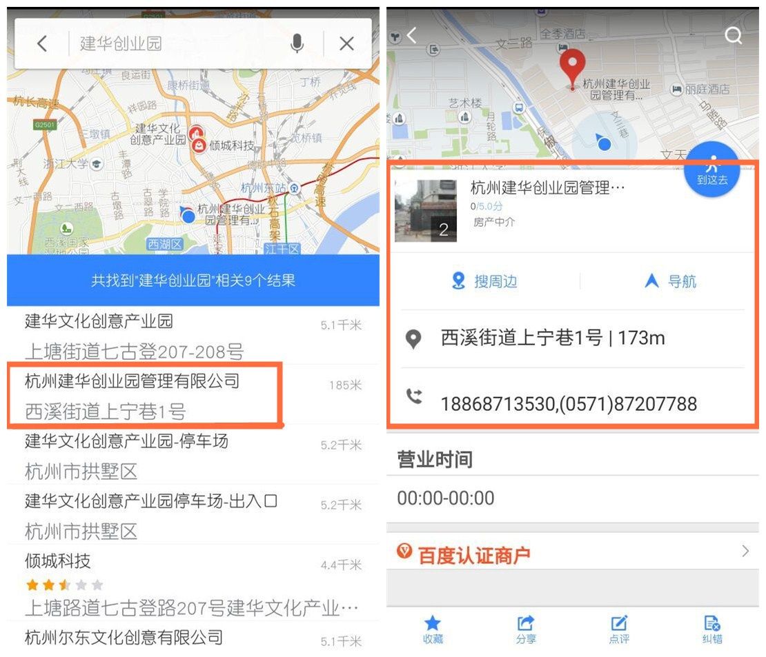 创业园地址通过百度地图认证