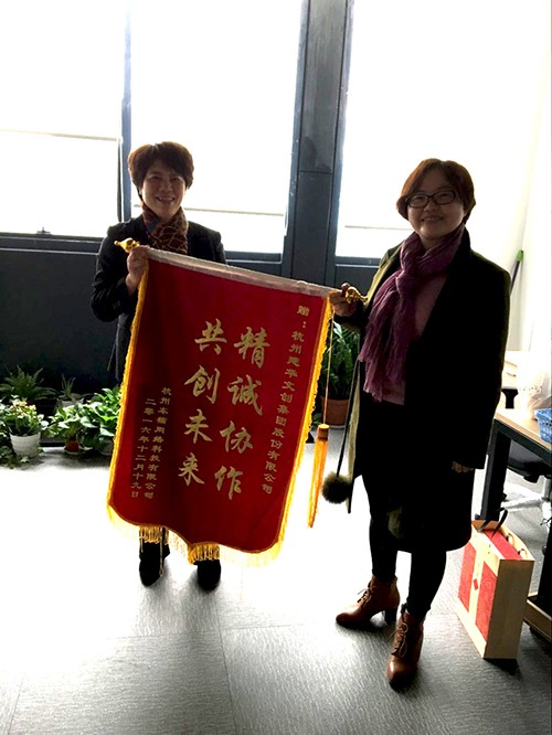 12月21日,运河汽车电商园入驻企业杭州车猫网络科技有限公司负责人向杭州建华文创集团送来“精诚协作,共创未来”锦旗,以表达真诚的感激之情。